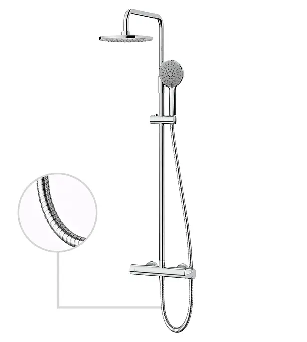 Rociador superior amplio: Equipada con un rociador de gran diámetro, ofrece una cobertura uniforme para una ducha envolvente y placentera.