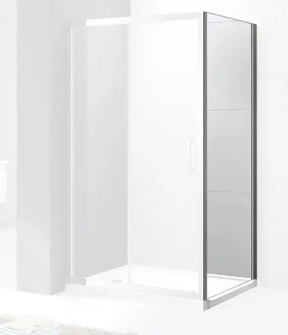 El Cristal Angular Fijo de color aluminio es un complemento esencial para configurar mamparas de ducha en forma de "L", especialmente diseñado para integrarse con los modelos Malve2, Zentral y Titan. Este panel fijo lateral permite cerrar eficientemente espacios de ducha ubicados en esquinas, garantizando una experiencia de baño cómoda y segura.
