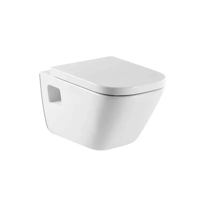 Este sanitario marca Roca es una solución elegante y funcional para baños modernos, optimizando el espacio y facilitando la limpieza.