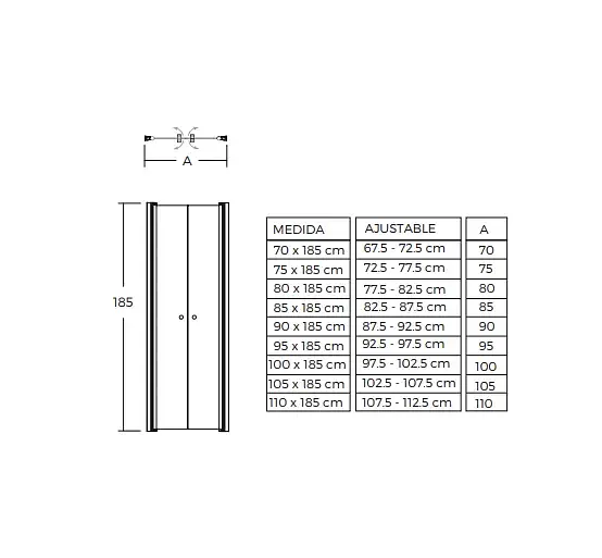 Esta mampara Wasser es una solución elegante y funcional para optimizar el espacio en tu baño. Diseñada para instalarse entre muros, esta mampara cuenta con dos puertas abatibles que pueden abrirse tanto hacia dentro como hacia fuera, adaptándose a tus necesidades y preferencias.