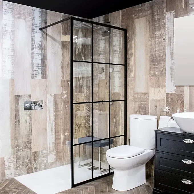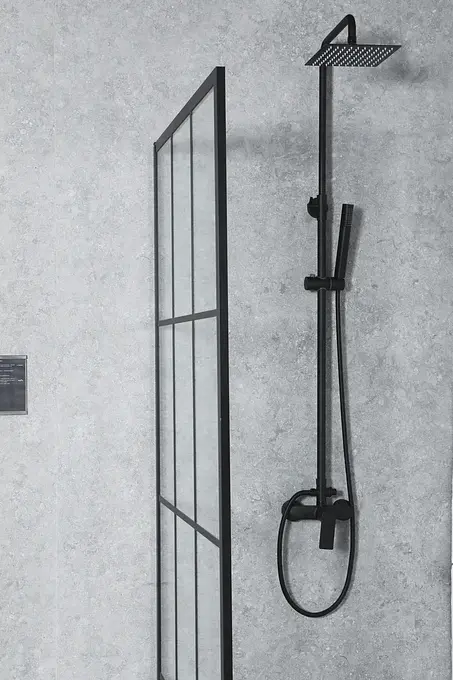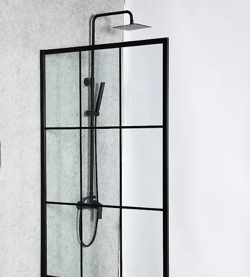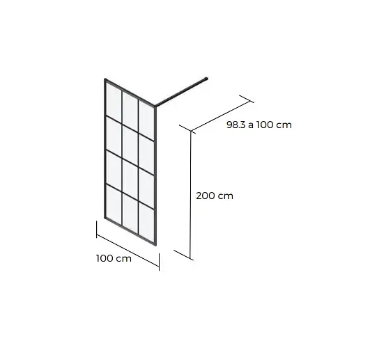 Esta mampara es una solución elegante y funcional para modernizar su espacio de baño. Diseñada con un estilo cuadriculado y un perfil negro mate, esta mampara fija aporta un toque contemporáneo.