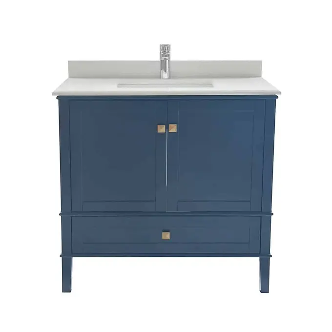 - Juego de tiradores color Brushed Brass instalado en mueble color Navy Blue