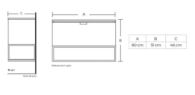 Mueble Suspendido Essenz Abedul 80 cm Incluye Lavamanos