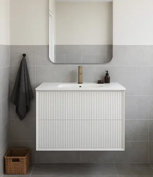 Mueble Suspendido Slot Acanalado Blanco Incluye Lavamanos