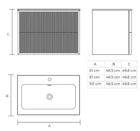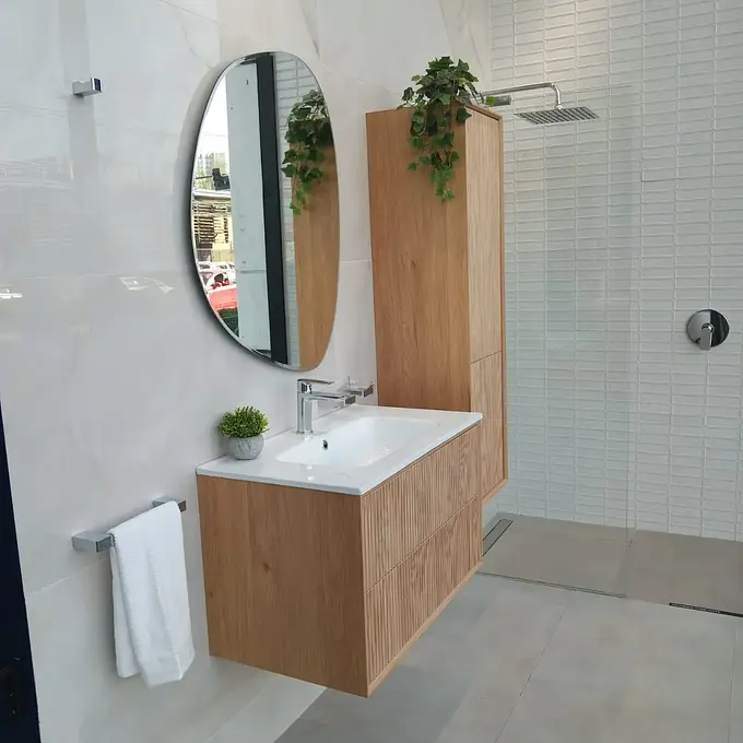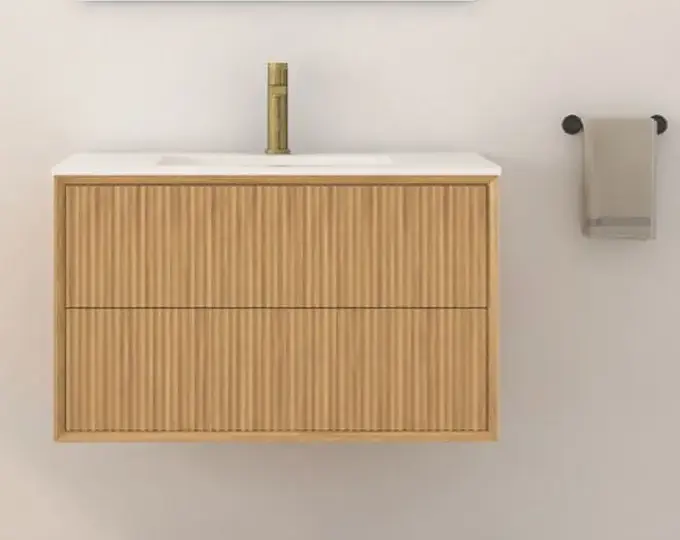 Mueble Suspendido Slot Acanalado Natural 81 cm Incluye Lavamanos