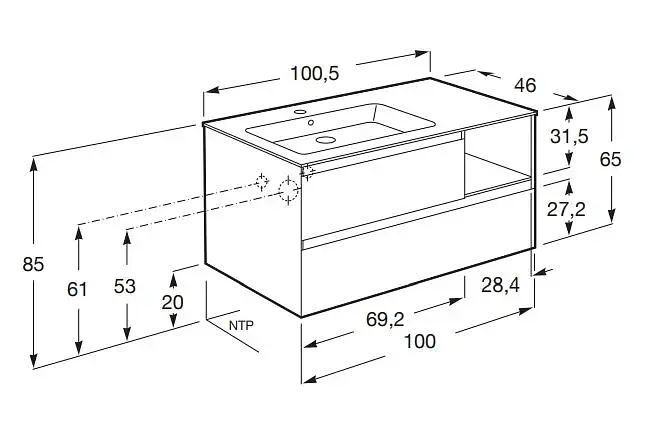 Mueble Tenue Unik Izquierdo Suspendido 100 cm