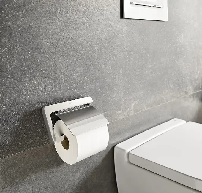 El Portarrollo Tempo con tapa de Roca es un accesorio de baño elegante y funcional que aporta un toque moderno a cualquier espacio. Con un diseño minimalista y acabado cromado brillante, este portarrollo es perfecto para mantener el papel higiénico al alcance y en su lugar, optimizando el espacio en el baño.