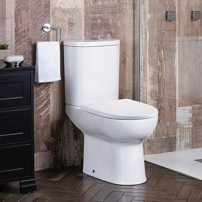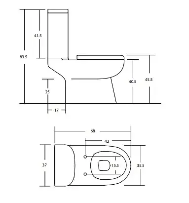 Accesorios incluidos: El paquete incluye asiento y tapa de WC de urea, mecanismo de descarga con doble botón, fijaciones al piso, manguito correspondiente según la descarga seleccionada, flexible de polímero de 1/2" y llave angular de 1/2", proporcionando todo lo necesario para una instalación completa y eficiente.