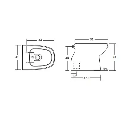 Sanitario Altura Especial 45 cm incluye spud de bronce / Alimentación posterior para para Fluxor Expuesto u Oculto / Accesibilidad Universal / No incluye fijaciones , asiento y tapa y fluxor