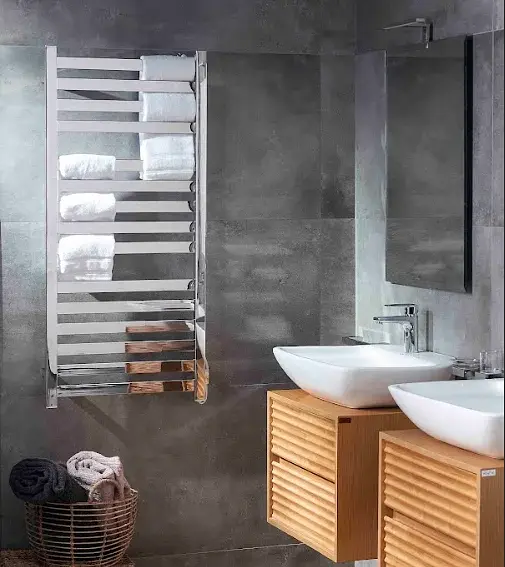 El secatoallas Elegant 120 de la marca Wasser es una pieza elegante y funcional para baños modernos. Con acabado cromado en acero inoxidable, combina estilo y alta resistencia. Su formato vertical y dimensiones bien pensadas aseguran máxima eficiencia y confort.