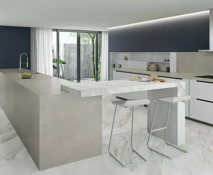 Resistencia y durabilidad: Fabricada en porcelanato de alta calidad, esta cubierta es altamente resistente al impacto, flexión, manchas, productos químicos, desgaste y rayaduras, garantizando una larga vida útil sin perder su belleza original.