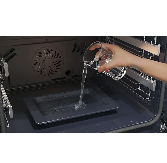 Coloca la bandeja de vapor y añade agua para lograr alimentos jugosos por dentro y crujientes por fuera. Ideal para carnes, verduras y pescados.