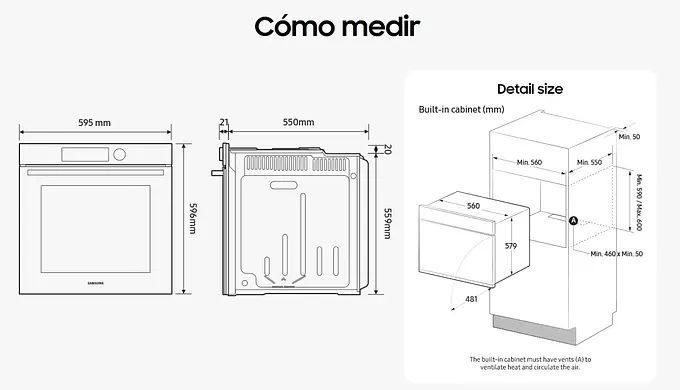 Controla tu horno desde el celular: accede a recetas guiadas, planifica comidas, ajusta tiempos y temperaturas desde la app SmartThings (requiere Wi‑Fi y cuenta Samsung).