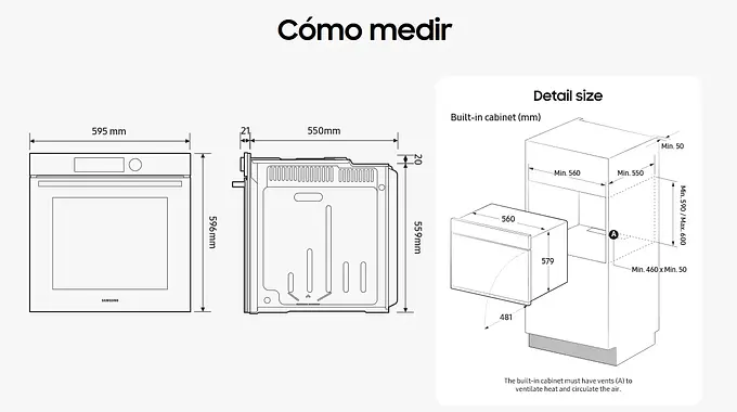 Controla tu horno desde el celular: accede a recetas guiadas, planifica comidas, ajusta tiempos y temperaturas desde la app SmartThings (requiere Wi‑Fi y cuenta Samsung).