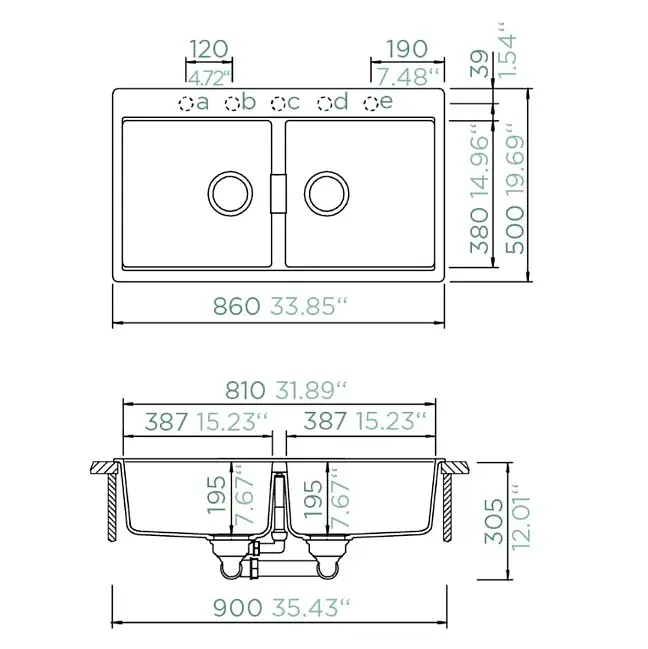 Incluye 5 pre-perforaciones para instalación de griferías y/o accesorios por sobre el lavaplatos.