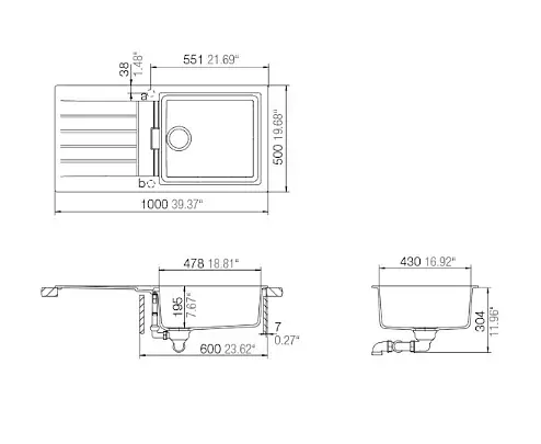 Incluye 2 pre-perforaciones (1 por cada frente) para instalación de griferías y/o accesorios por sobre el lavaplatos.