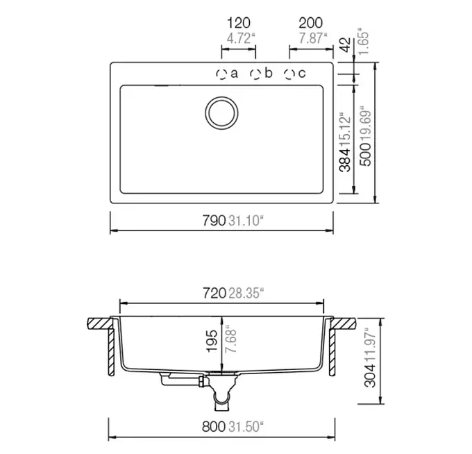 Incluye 3 pre-perforaciones para instalación de griferías y/o accesorios por sobre el lavaplatos. Incluye broca diamantada para las perforaciones.