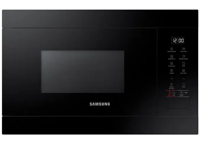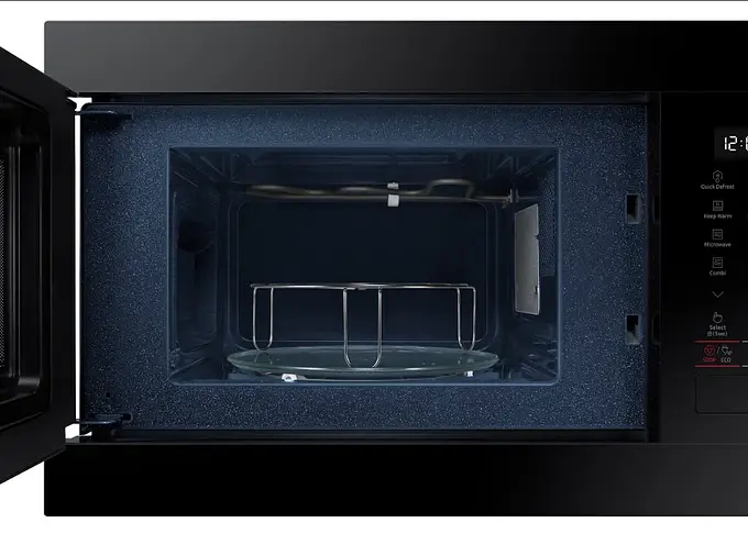 Compacto y elegante, este microondas Samsung combina estilo minimalista con funciones prácticas para la vida cotidiana: