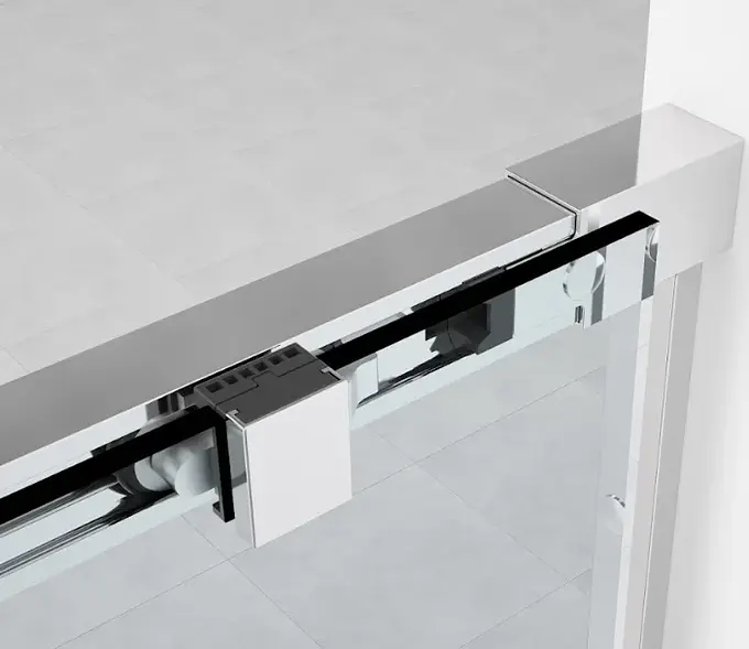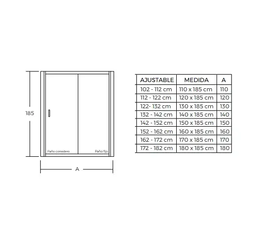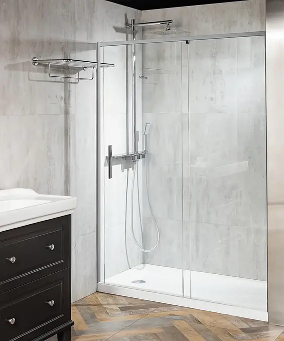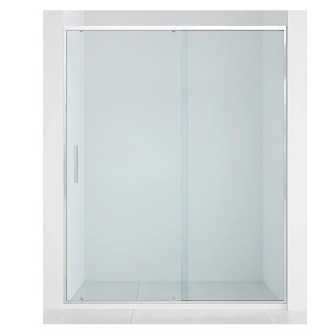 Diseño de vidrio fijo con puerta corredera: Maximiza el espacio disponible y facilita un acceso cómodo a la ducha.