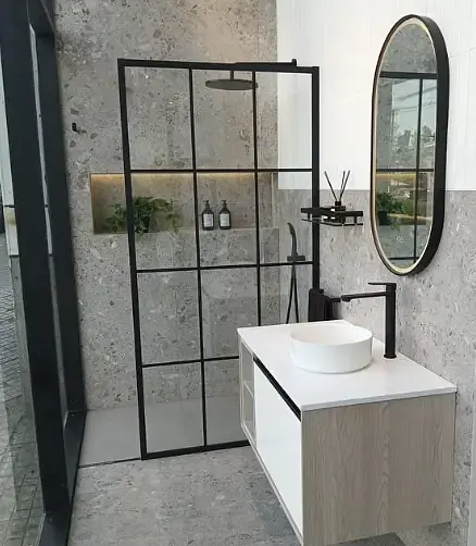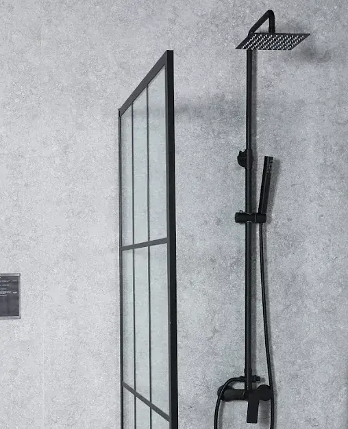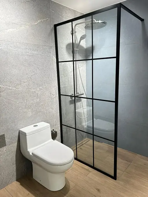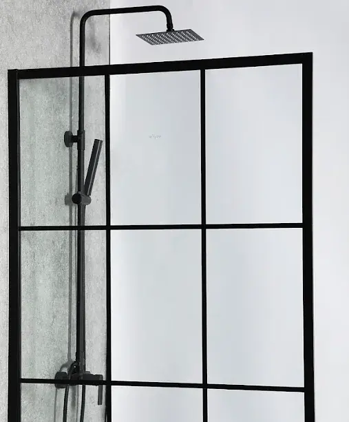 Esta mampara es una solución elegante y funcional para modernizar su espacio de baño. Diseñada con un estilo cuadriculado y un perfil negro mate, esta mampara fija aporta un toque contemporáneo.