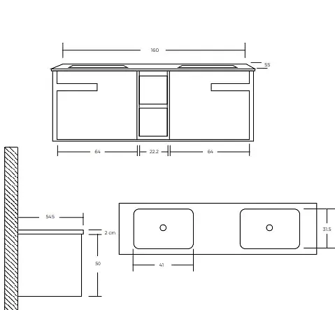 Mueble Suspendido Lotus Doble Incluye Lavamanos