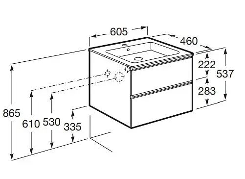 Mueble Base con Lavamanos Sobremueble / Dos Cajones / Sifón no Incluido / No Incluye Grifería / Patas Opcionales