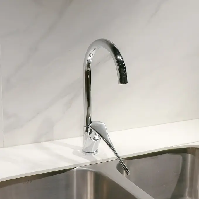 Cuello de cisne con caño giratorio: Proporciona flexibilidad y comodidad al permitir un amplio rango de movimiento, ideal para lavar utensilios de gran tamaño.