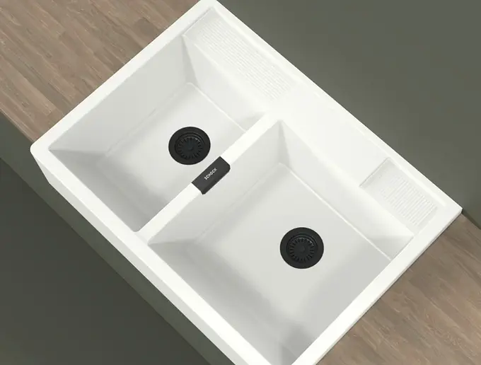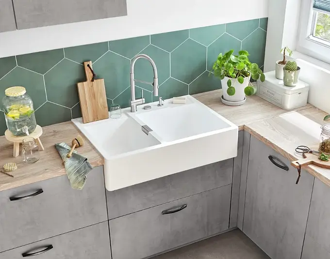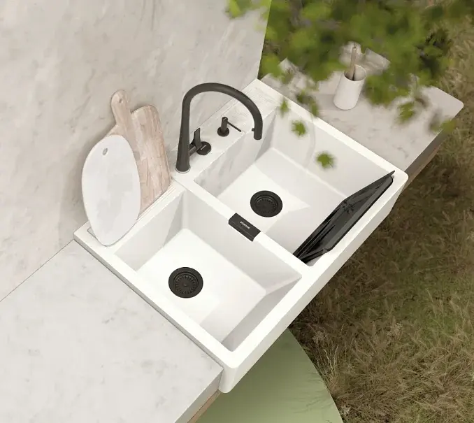 El lavaplatos Kallio M 175 de Schock está fabricado en la tecnología Cristadur Sink Green, la cual crea una superficie repelente a la suciedad, resistente a altas temperaturas y compuesto en un 99% con materiales reciclados de primera calidad.
