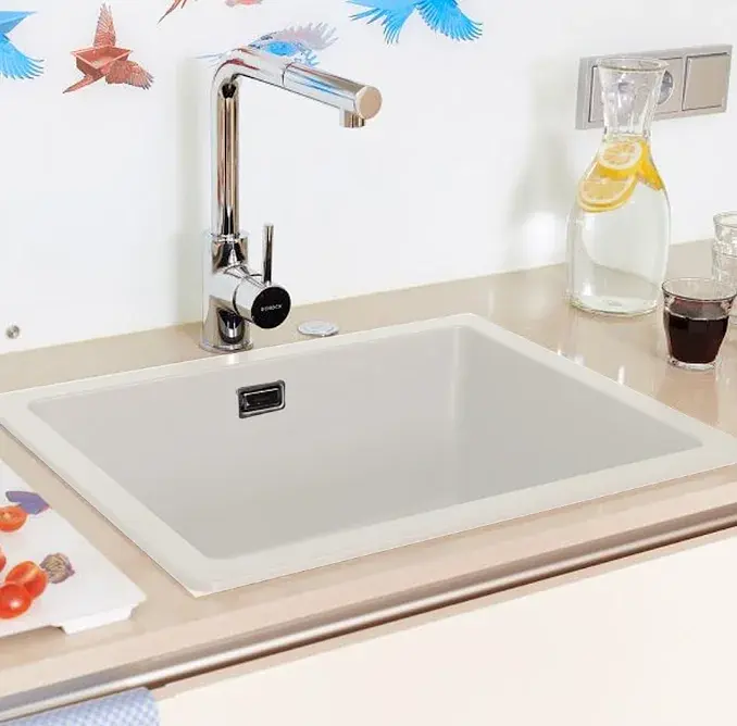 El lavaplatos Soho N 100 S es ideal para espacios más pequeños, aportará esa dosis de diseño y elegancia a tu cocina. Composición de 80% de cuarzo, 20% resina acrílica entregando una superficie de alta resistencia a impactos, repelente a la suciedad, a prueba de calor y pro higiénico (superficie antibacterial)