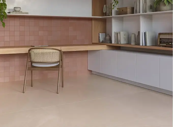 Este revestimiento de gres aporta un toque vibrante y moderno a cualquier espacio. Su tonalidad coral y acabado brillante lo convierten en una opción ideal para quienes buscan destacar áreas específicas con un diseño audaz y contemporáneo.