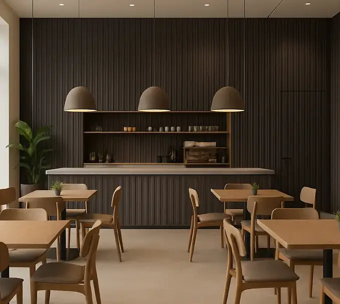Dale movimiento y estilo a tus espacios con Wave Wall de Bath Co., un panel de listones de MDF revestidos en folio melamínico con diseños que evocan la textura natural de la madera. Perfectos para interiores, estos paneles crean un punto focal distintivo en salas de estar, comedores, restaurantes y oficinas, aportando un look contemporáneo y personalidad a los muros.