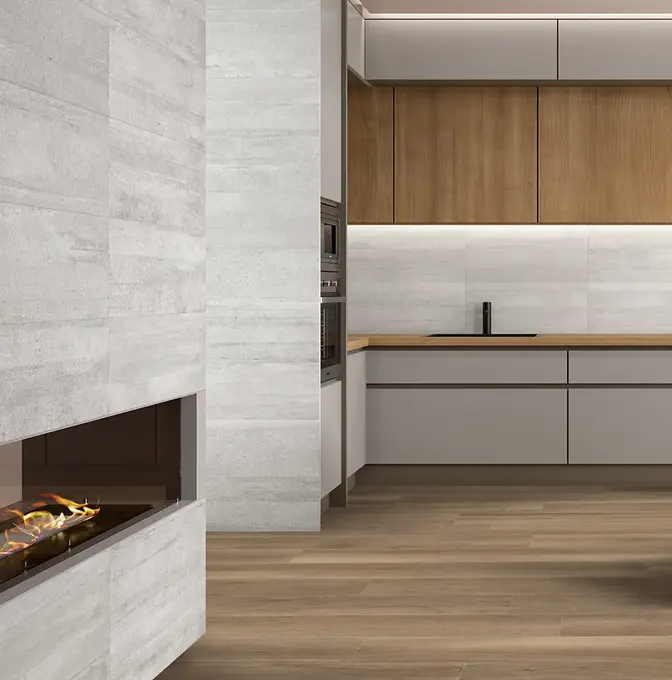 Este porcelanato de la marca Colorker es una opción sofisticada y moderna para revestir pisos y muros, aportando un estilo contemporáneo inspirado en el diseño terrazo.