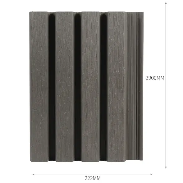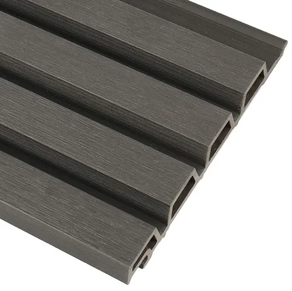 Wall Panel Exterior WPC Co-Extruido con recubrimiento SURLYN™ Revestimiento arquitectónico de alta durabilidad para uso en exteriores, desarrollado con tecnología de co-extrusión con SURLYN™, que asegura máxima resistencia al agua, rayos UV e impactos. Disponible en 3 colores, es la solución perfecta para fachadas, muros, cielos y proyectos tanto residenciales como institucionales. Fabricado con materiales reciclados (WPC), este panel es fácil de instalar, no requiere pintura ni mantención intensiva y ofrece una larga vida útil, combinando diseño, sustentabilidad y alto desempeño en aplicaciones de interior y exterior.